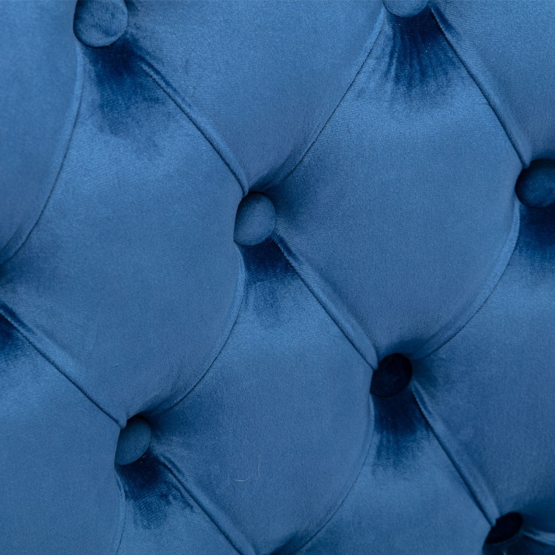 4x Velvet Dining Chairs Upholstered Tufted Kithcen Chair with Solid Wood Legs Stud Trim and Ring-Blue