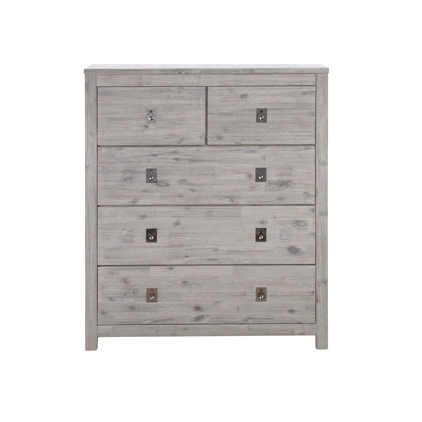 5 Pieces Bedroom Suite with Solid Acacia Wood Veneered Construction in Queen Size White Ash Colour Bed, Bedside Table , Tallboy & Dresser