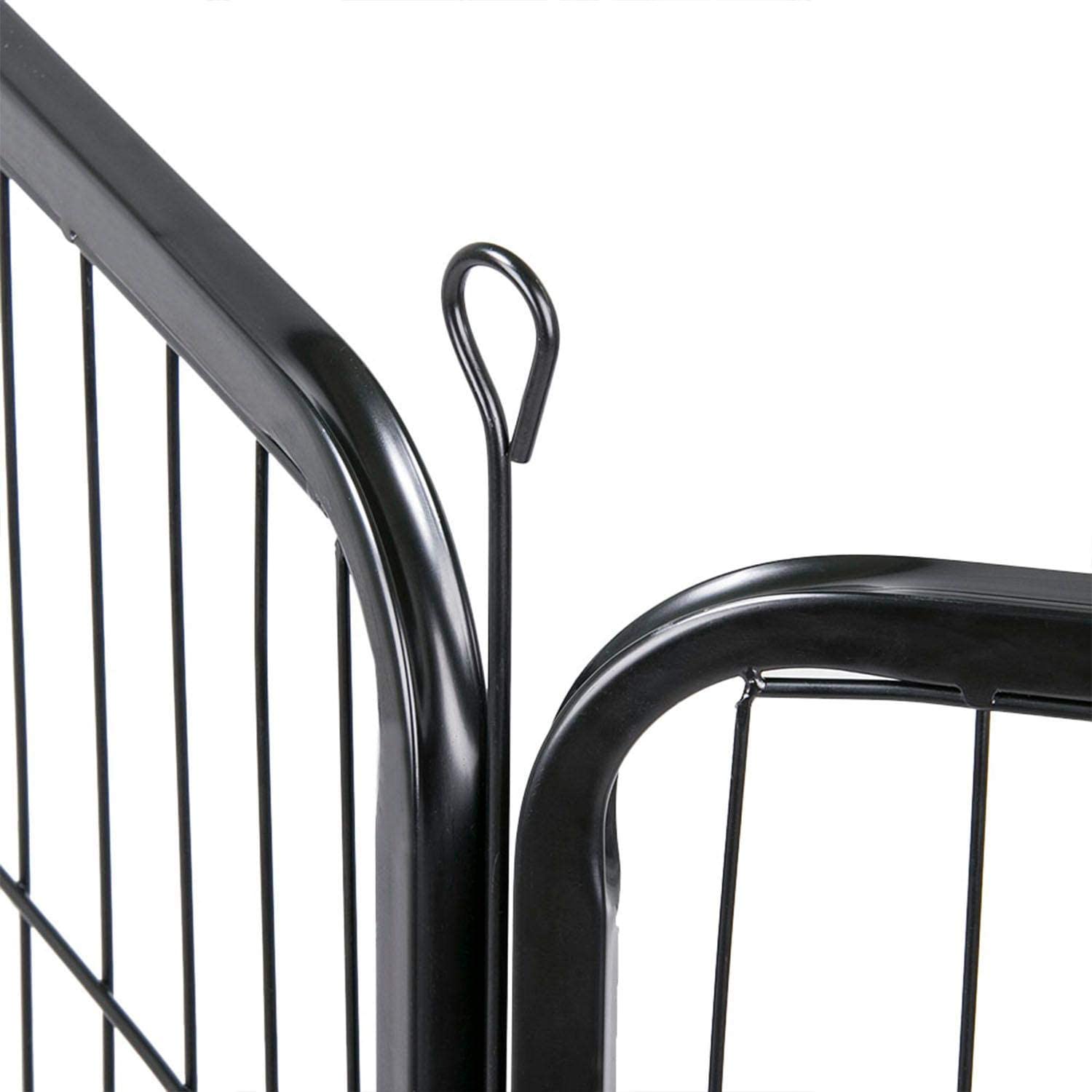 This heavy duty pet playpen is made of premium metal wires. Non-toxic painted frame guarantees sturdiness and durability.Six detachable panels can be set up in different shapes to meet your various needs.If you need a larger fence for your pets to enjoy running, you can order more sets and combine them together.60cm tall playpen is ideal for small animals like puppies, kittens, rabbits, fowls, guinea pigs to play in.Also a door with latch and metal bars help keep them securely confined in place.This foldable playpen can be collapsed for easy storing and also simple to set up in minutes.