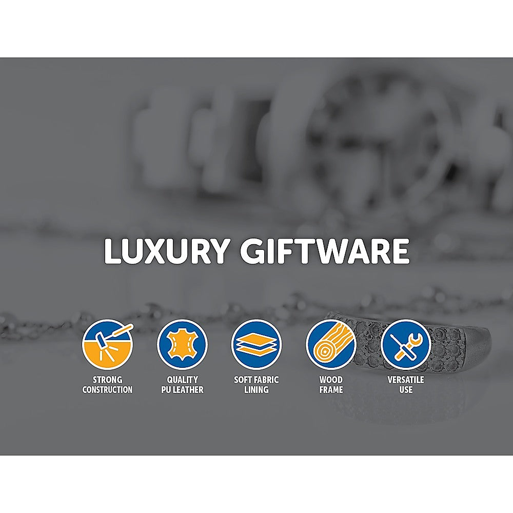 The soft fabric lining will keep your watch collection safe and protected from scratches and the elements. The box provides six compartments that feature removable cushions for the storage of other jewelry and valuables.