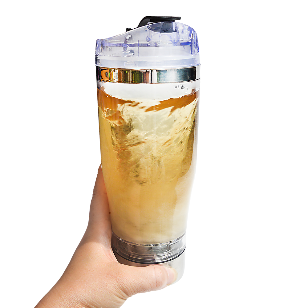 With its 600-millilitre capacity, it can handle a good-sized protein shake. Just pour in your liquid ingredient and press the power button. It'll create a vortex—a mini-tornado inside your shaker. Next, add the protein powder and wait for a half-minute. You'll have a delicious smoothie or protein shake to power your day.