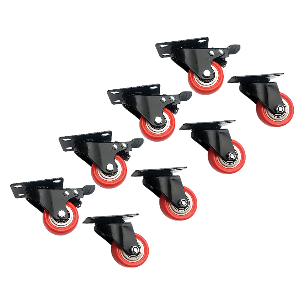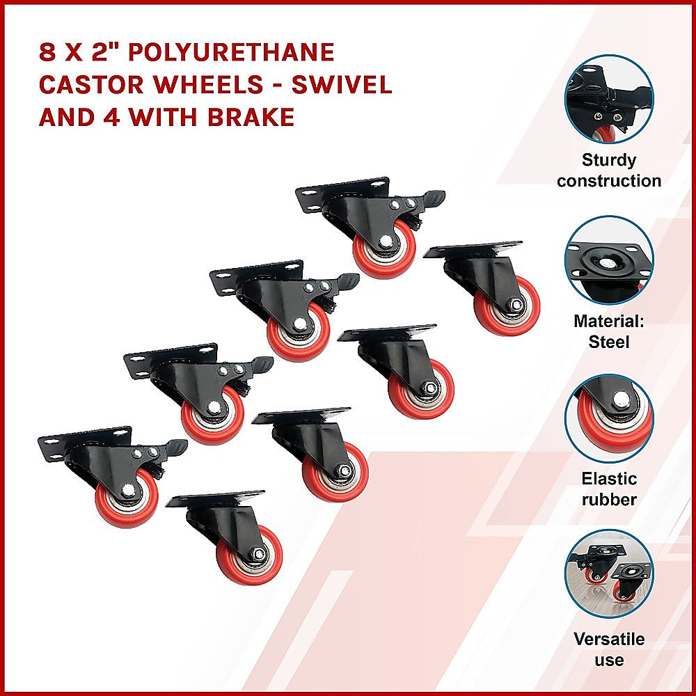 8 x 2" Polyurethane Castor Wheels - Swivel and 4 with brake