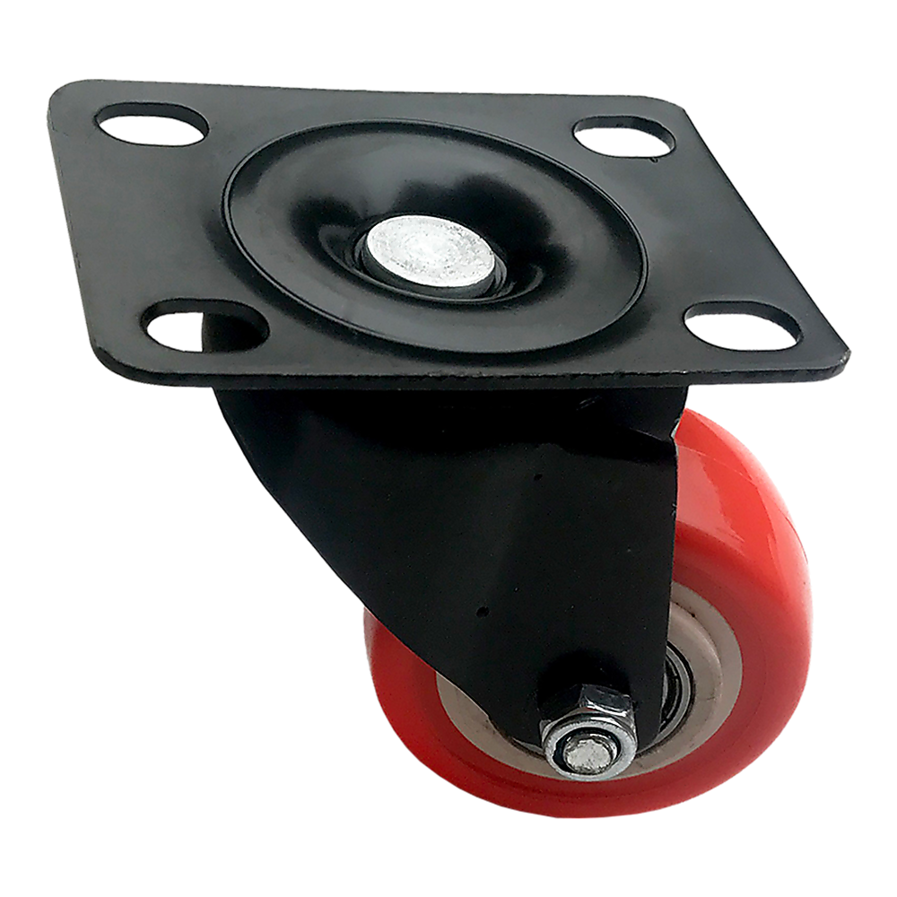 - Ball bearings: double ball bearings on each wheel; one ball bearing on the swivel top