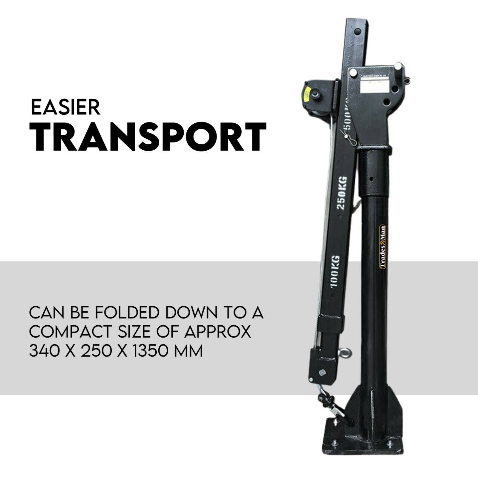The crane is exceptionally versatile for many lifting situations, and the crane being detachable from the base for security. It can even be mounted on your van or trailer body to allow the easy on/off lift of heavy items.