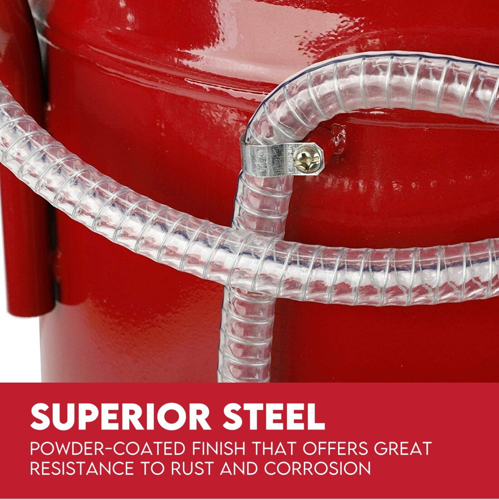 - Rugged powder coated tank