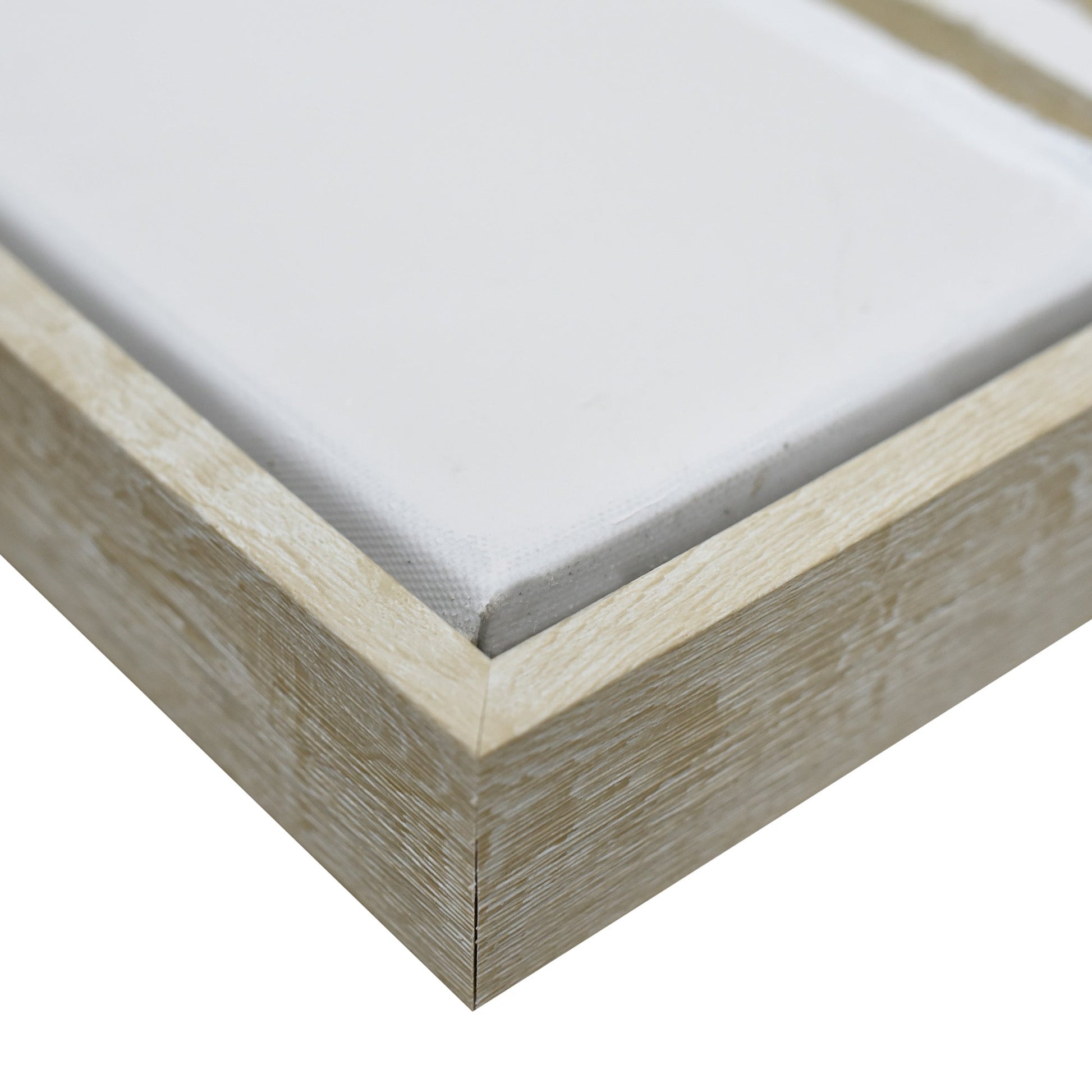 Stretched and gallery wrapped around a wooden stretcher and finished with a floating frame. There is a gap between the frame and print, which creates the floating effect and literally makes the canvas print stand out even more.