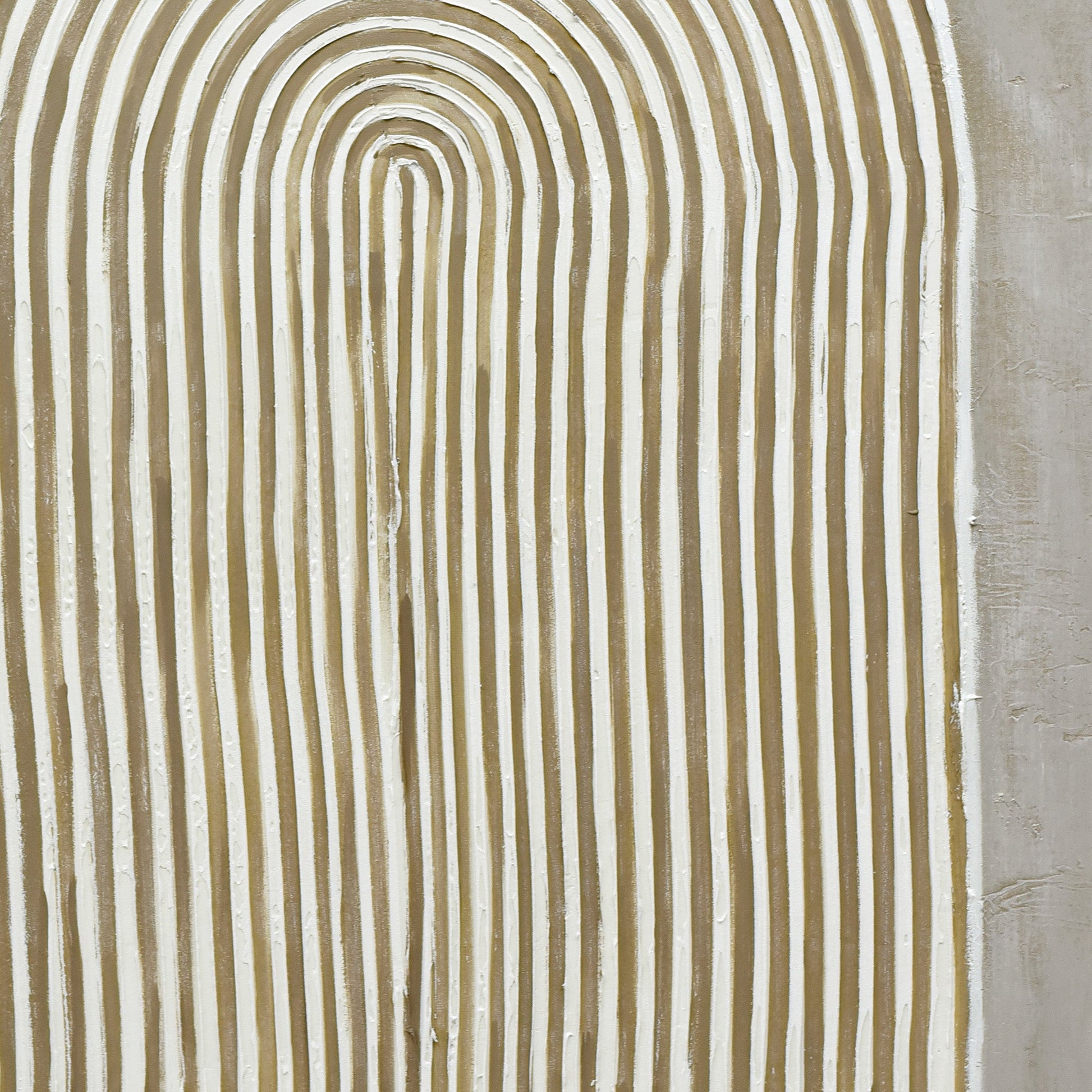 "Duality's Embrace" is an art piece that speaks to the contrasts and harmonies present within life and nature. Measuring 80cm x 120cm, this hand-painted marvel showcases a tactile journey through its rich thick textures. A backdrop split meticulously down the middle captures the dichotomy of pure white and muted grey, symbolizing the balance of light and shadow in our lives. Against this stark canvas, a U-shaped line gracefully descends in the foreground, crafted from pristine white plaster juxtaposed with earthy brown paint. This design element resonates with themes of grounding and transcendence. Encased in a delicate light wood frame, "Duality's Embrace" serves as a meditative reminder of the intricate dance between opposing forces and the beauty that emerges from their union.