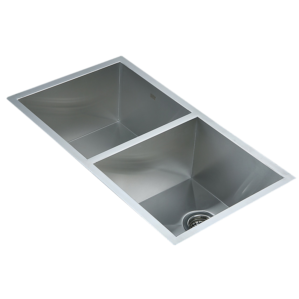 This handsome double sink is hand-crafted from exceptional 304 stainless steel with 1.2mm thickness and a beautiful satin finish. This material will provide many years of great looks and dependable operation. Both drains have built-in self-closing plugs, and the outside of the sink is fully coated to dampen noise and prevent water drumming. The sink measures 820 x 457 x 255mm (W x L x D) and can be top mounted or underbench mounted.