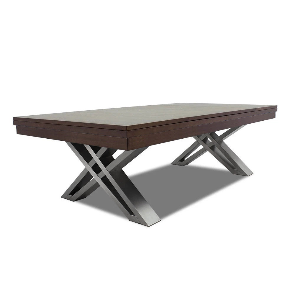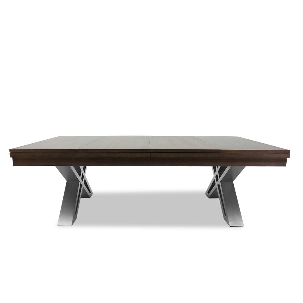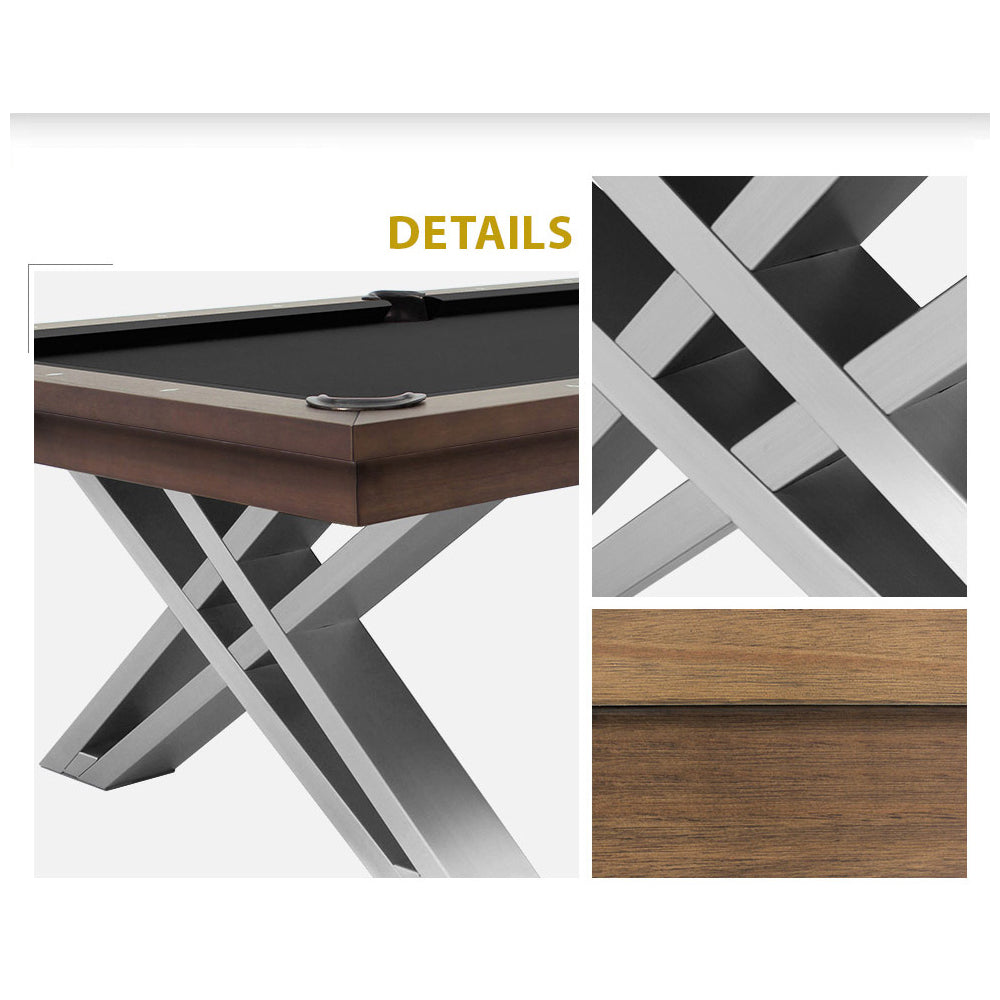 This 8-foot pool table Pierce is made of high-quality pine wood. It's well decorated with elm plates and red oak plates. Moreover, its elegant iron legs feature good stability and a unique look. The table has internal leather pockets. The 3-piece, 25 mm natural slate and a Solid wood frame guarantee optimal speed, smooth roll and longevity. There is also an optional cover plate, which can quickly and easily turn such a pool table into a great dining table.