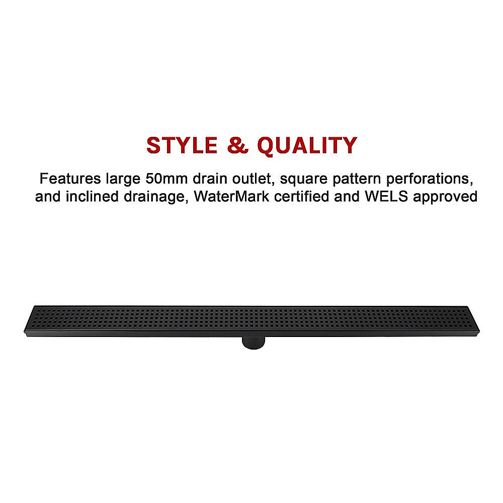 900mm Bathroom Shower Black Grate Drain w/Centre outlet Floor Waste Square Pattern