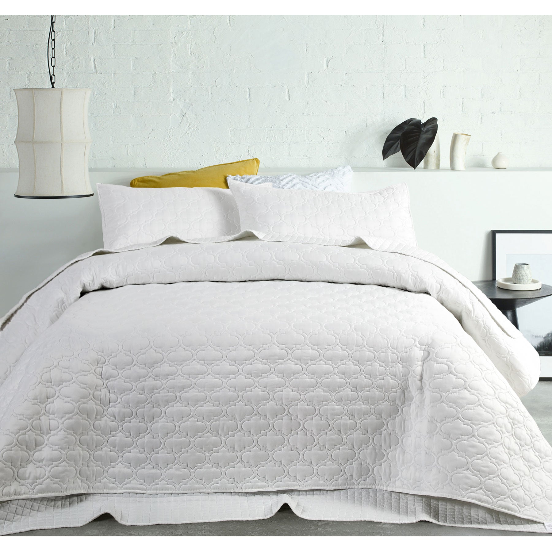 This OPACO Embossed Quilted Coverlet Set Queen/King White by Accessorize will completely refresh your old looking bedroom to a trendy and cosy escape. It features a lovely quilted moroccan design on coverlet & 2 standard pillowcases. The fresh colour tone makes your bedroom more welcoming. It is made from high quality and soft touch microfiber and polyester filling for a good night's sleep.