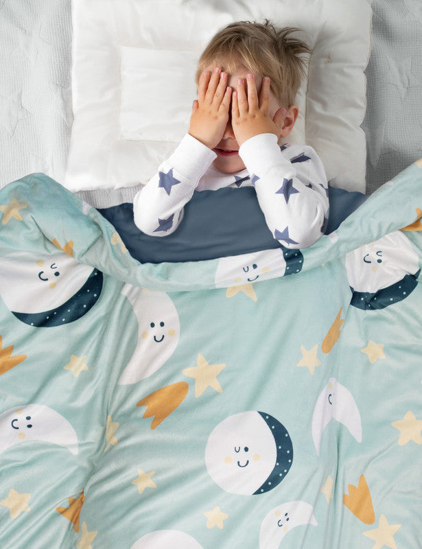 Filled with no-toxic odour-free glass beads, our weighted blanket is designed with a six-layer anti-leakage structure with the glass beads evenly locked in the middle to ensure your childs safety. Our weighted blanket comes with a glow in the dark plush cover that not only stimulates your childs senses, but may be extremely comforting and ignite thier imagination with it's glowing stars.