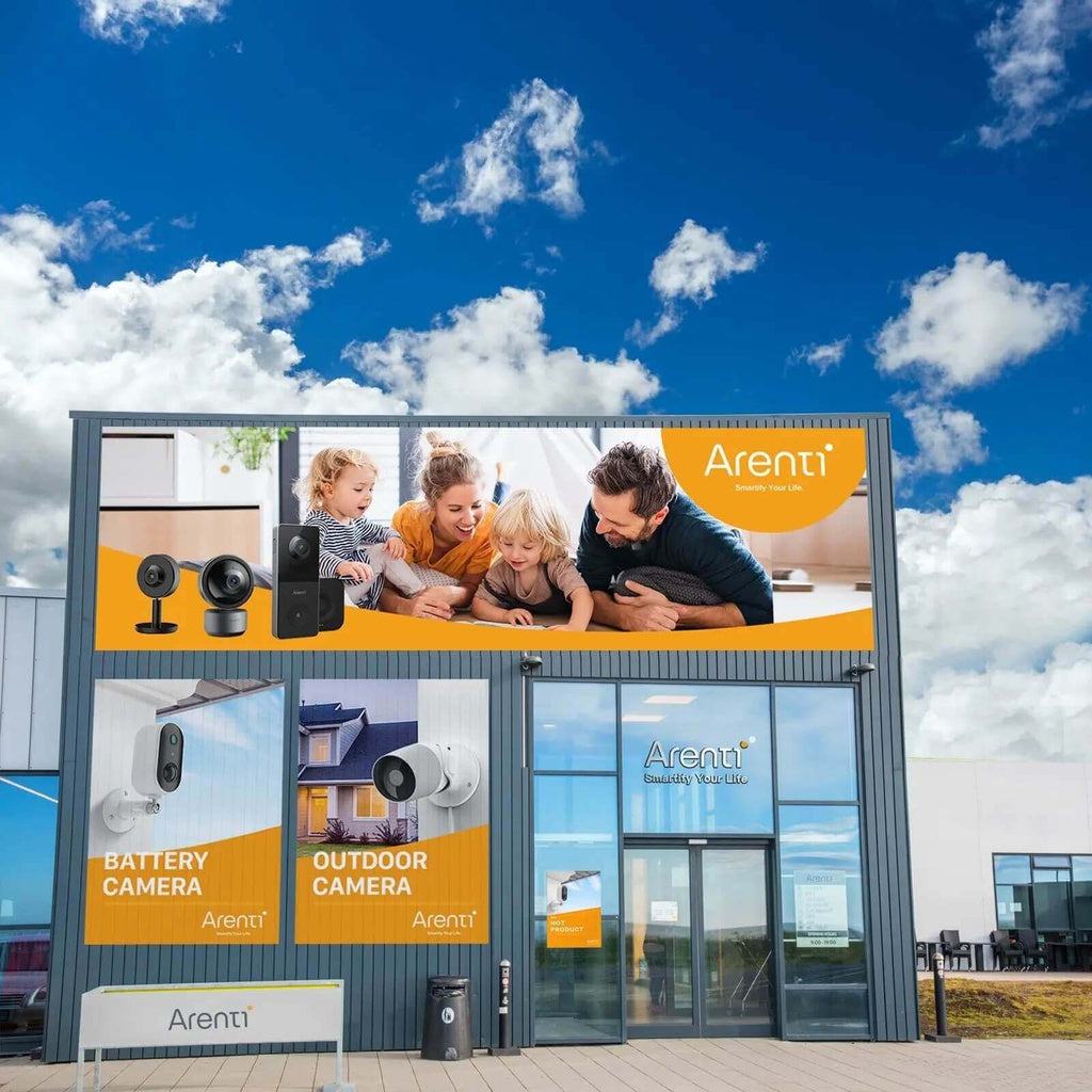 The DOME1 camera has a wide field of view — it rotates 350° horizontally and ±110° vertically. You can see every part of your home with easy pan-and-tilt control through the Arenti App. - Two-Way Audio