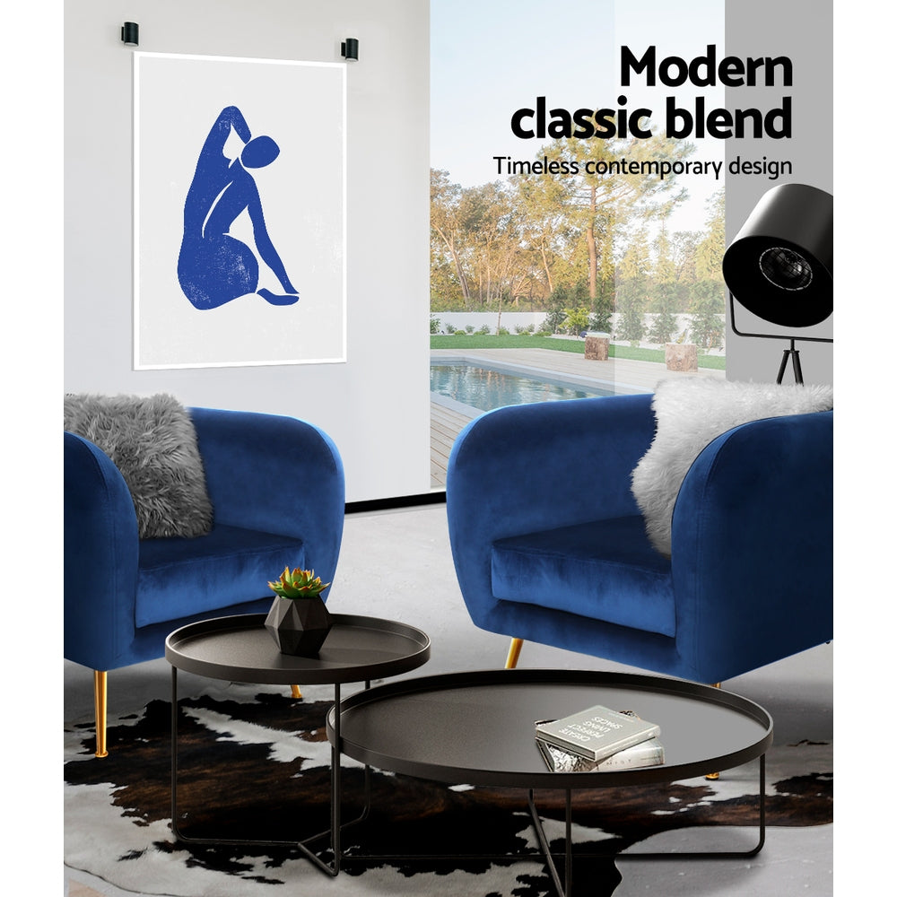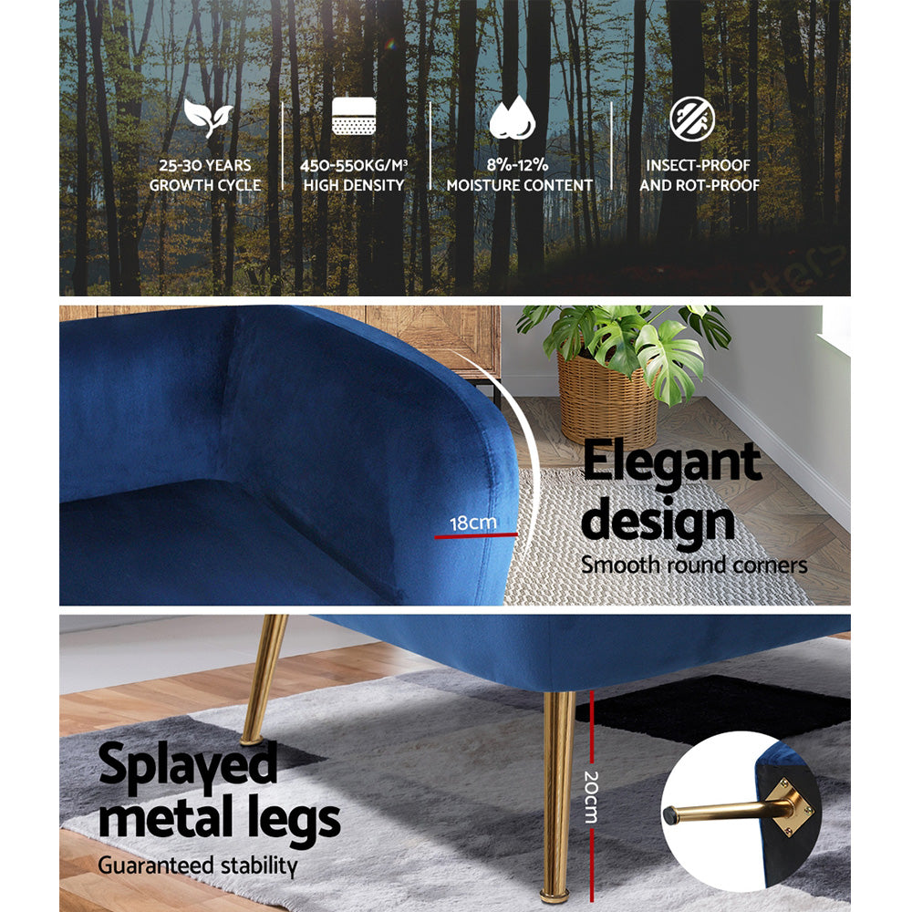 Artiss Armchair Lounge Arm Chair Sofa Accent Armchairs Chairs Couch Velvet Navy
