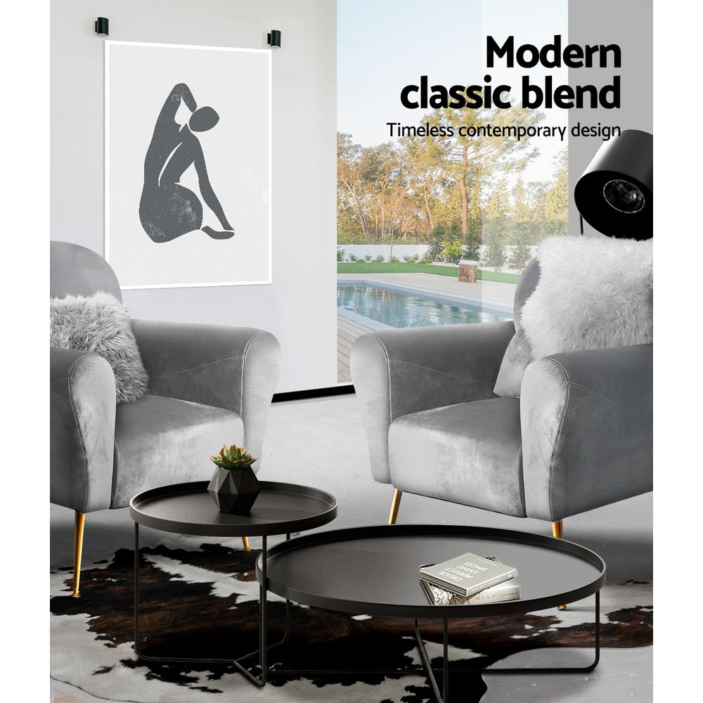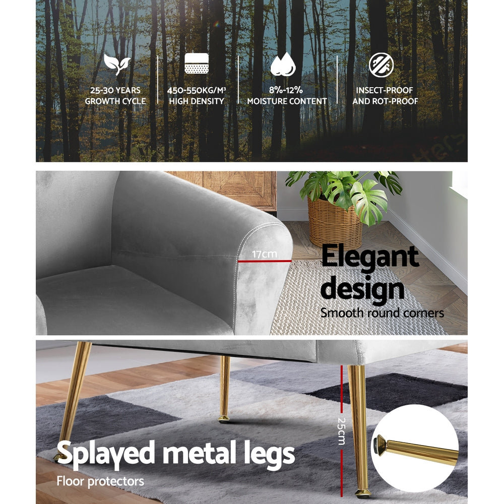 Artiss Armchair Lounge Chair Accent Armchairs Chairs Sofa Grey Velvet Cushion