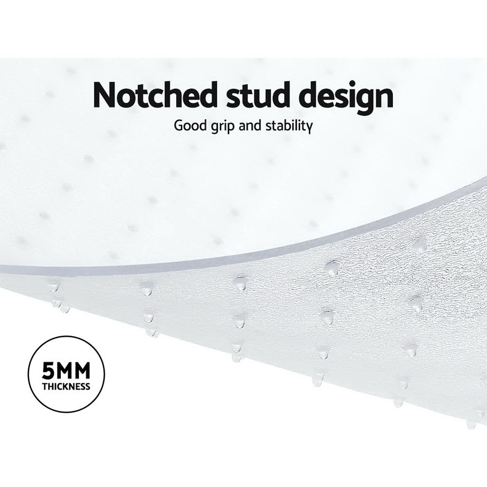 What a better way to keep your floors safe from scratches, scuffs, spills, and other marks. The Artiss chair mats are designed to prevent your floors from getting scratched due to chair castor wheels. It also suits carpeted surfaces and helps the chair to glide smoothly without applying force or pressure to move. The chair mat features notched stud design for good grip and stability, and the anti-slip bottom prevents from slipping on floors. You can use our chair mat for various purposes. Use it under the dining chairs, bar stools, work desk, or pet food bowl. Our chair mat is made from premium PVC material, which makes them durable, longlasting, and easy to clean. Its stiffer and stronger construction protects your carpets from the dimpling effects of castor wheels. Furthermore, our chair mat comes well-packed and ready-to-use. All you need do is unroll the mat and lay it flat on the ground. You can add some weight on the edges to flatten it. For better results, keep it under the sun for two hours. Without second thought, purchase our Artiss chair mat for your space today.