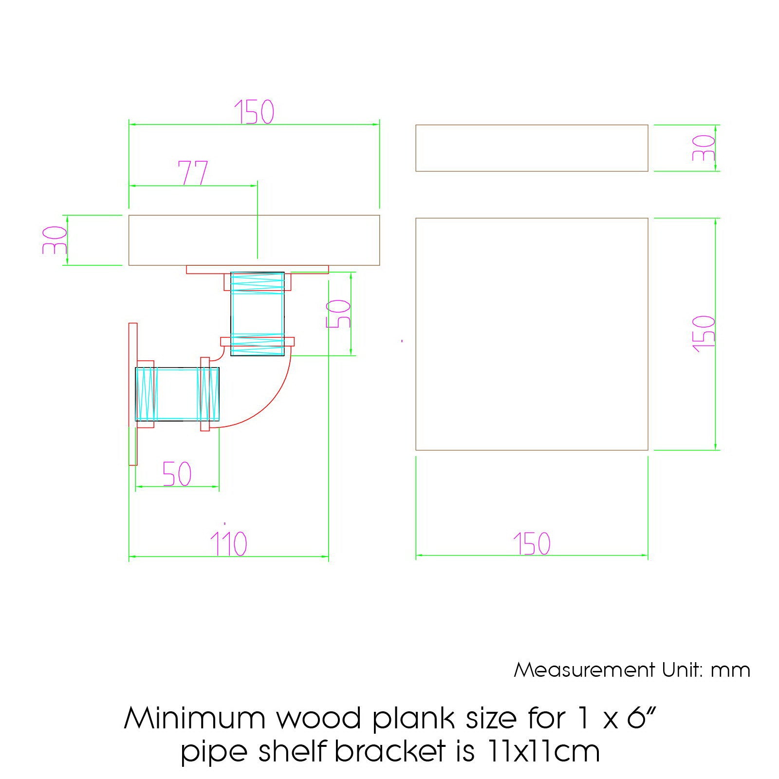 Made from quality metal pipe, the L shape shelf mount brackets are great for building a storage shelf while adding a rustic accent to the space. Paired with any rustic wood and they will give the wall an instant industrial touch! The brackets can be assembled upward and downward to create different effects. Comes with 8 pieces six inches pipe shelf mount brackets. Perfect for home, office and cafe interior. The minimum wood plank size for per 6 inch bracket is 15x15cm.