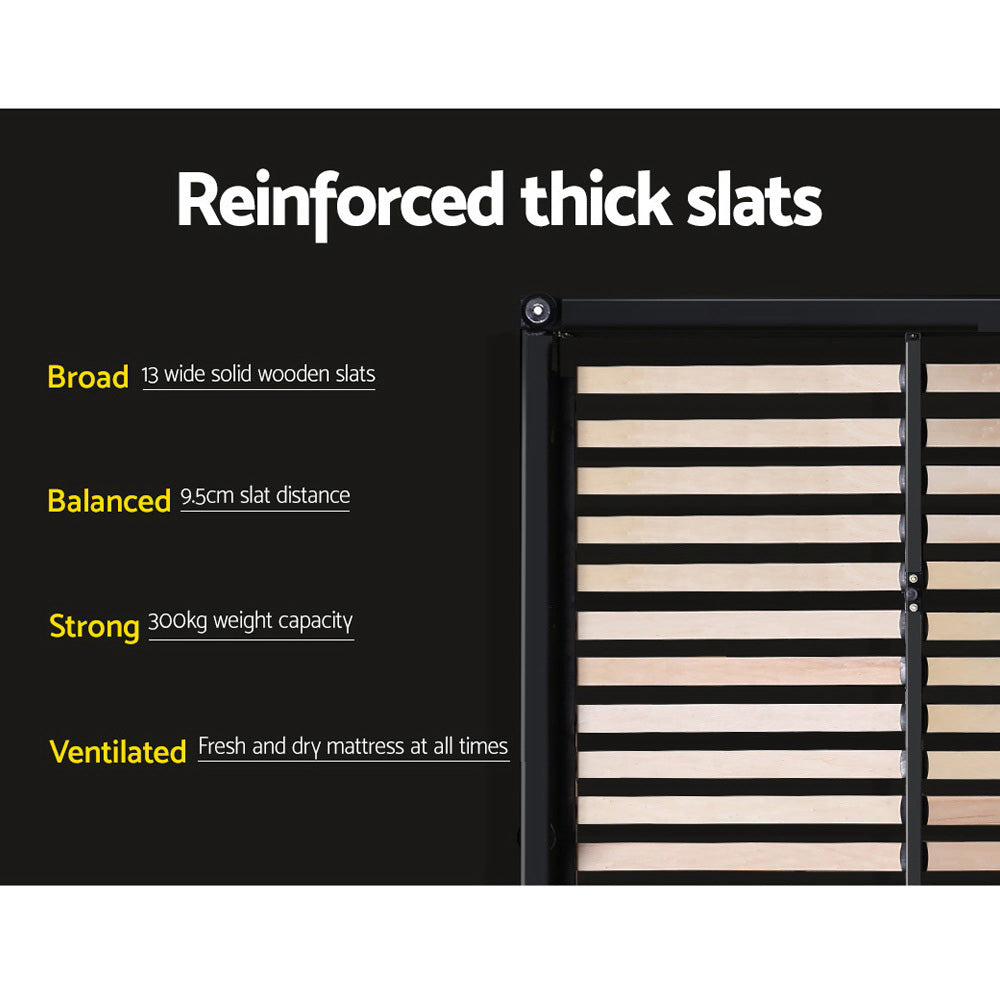 It is time to get the sleep you deserve with this Artiss Nino Bed Frame. Beautifully draped in faux-linen fabric, this is the luxurious bed frame you all deserve to rest in every night. The smooth headboard brings the prestige, whilst the strong steel frame with reinforced steel bars and a wooden arched slat base can put your mind at ease as you know you are sleeping on quality. One of the best qualities is the fact the bed frame has a gas lift which creates an instant storage area with ample space for you to hide away your items. This bed frame has the smarts as well as being great to look at!