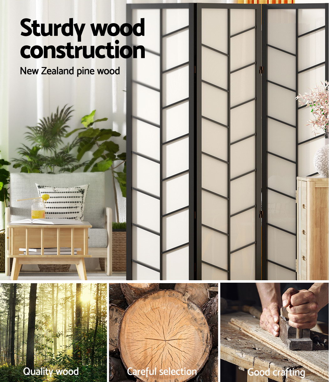 Artiss Room Divider Screen Privacy Wood Dividers Stand 4 Panel Archer Black