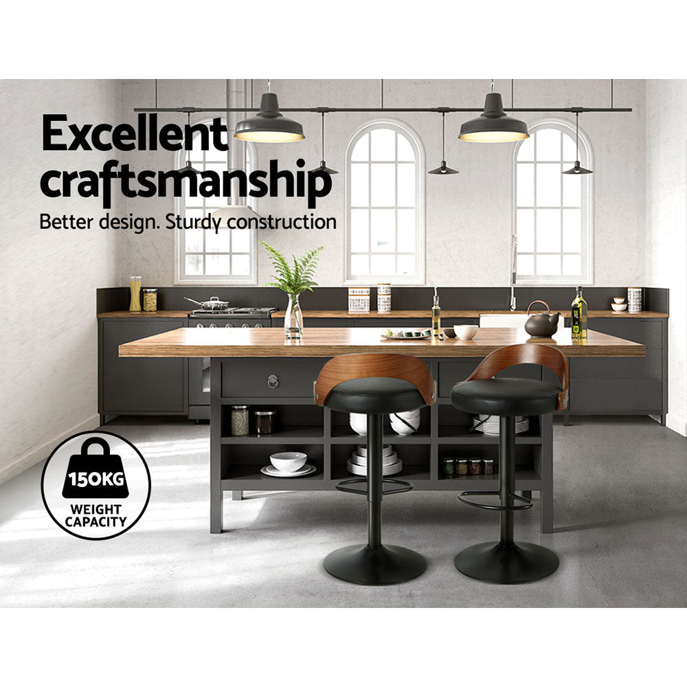 Artiss Set of 2 Bar Stools Kitchen Gas Lift Wooden Stool Metal Barstools Black Swivel