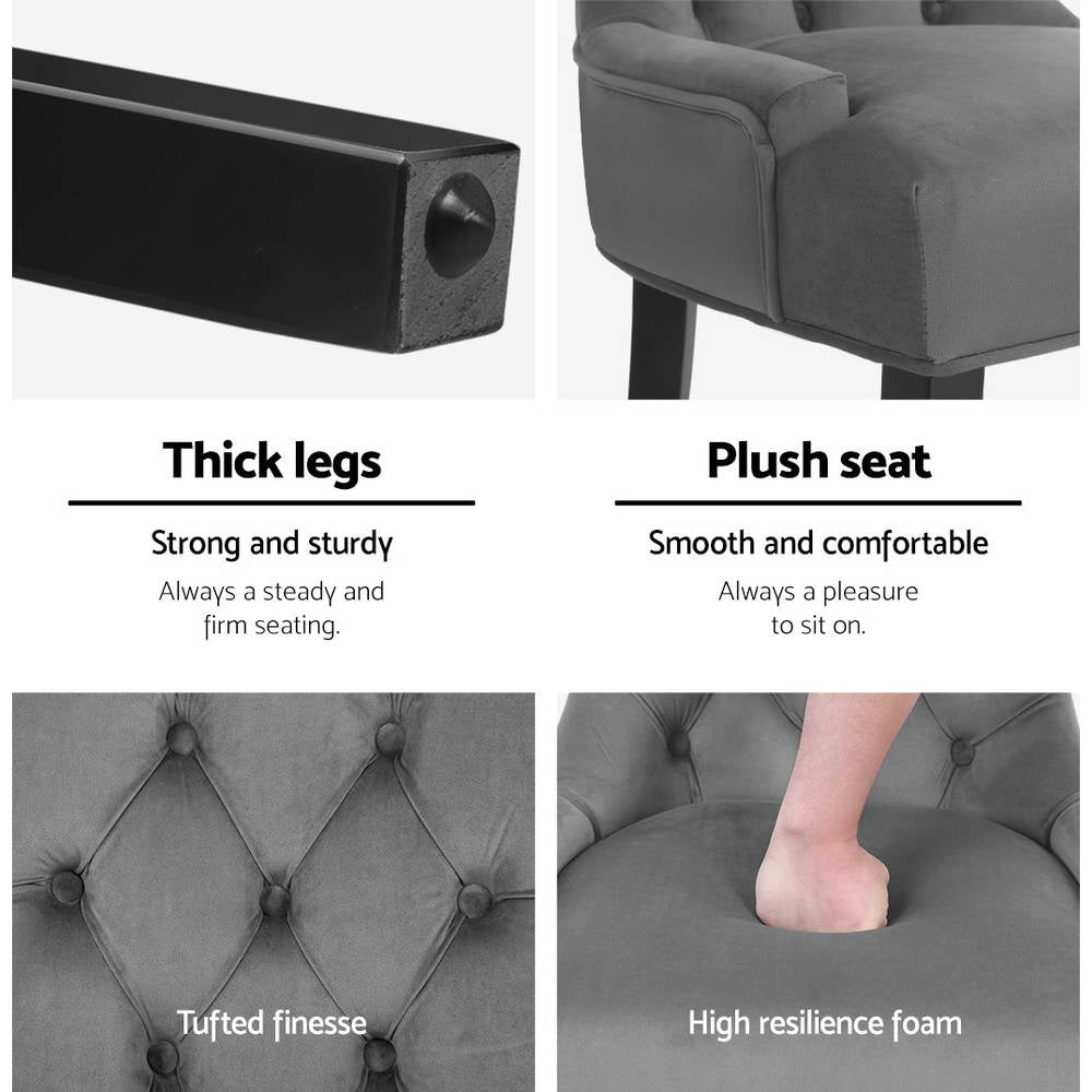 Artiss Set of 2 Dining Chairs French Provincial Retro Chair Wooden Velvet Fabric Grey