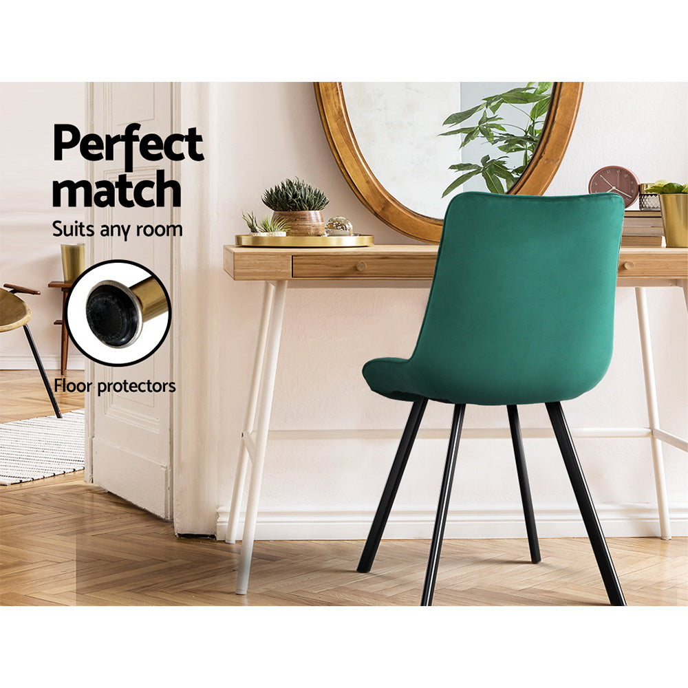 Artiss Set of 2 Reith Dining Chairs Kitchen Cafe Chairs Velvet Upholstered Green