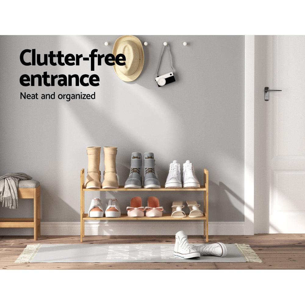 Artiss Shoe Rack Bamboo Storage Cabinet 2 Tiers Portable Organizer Shelf Pine