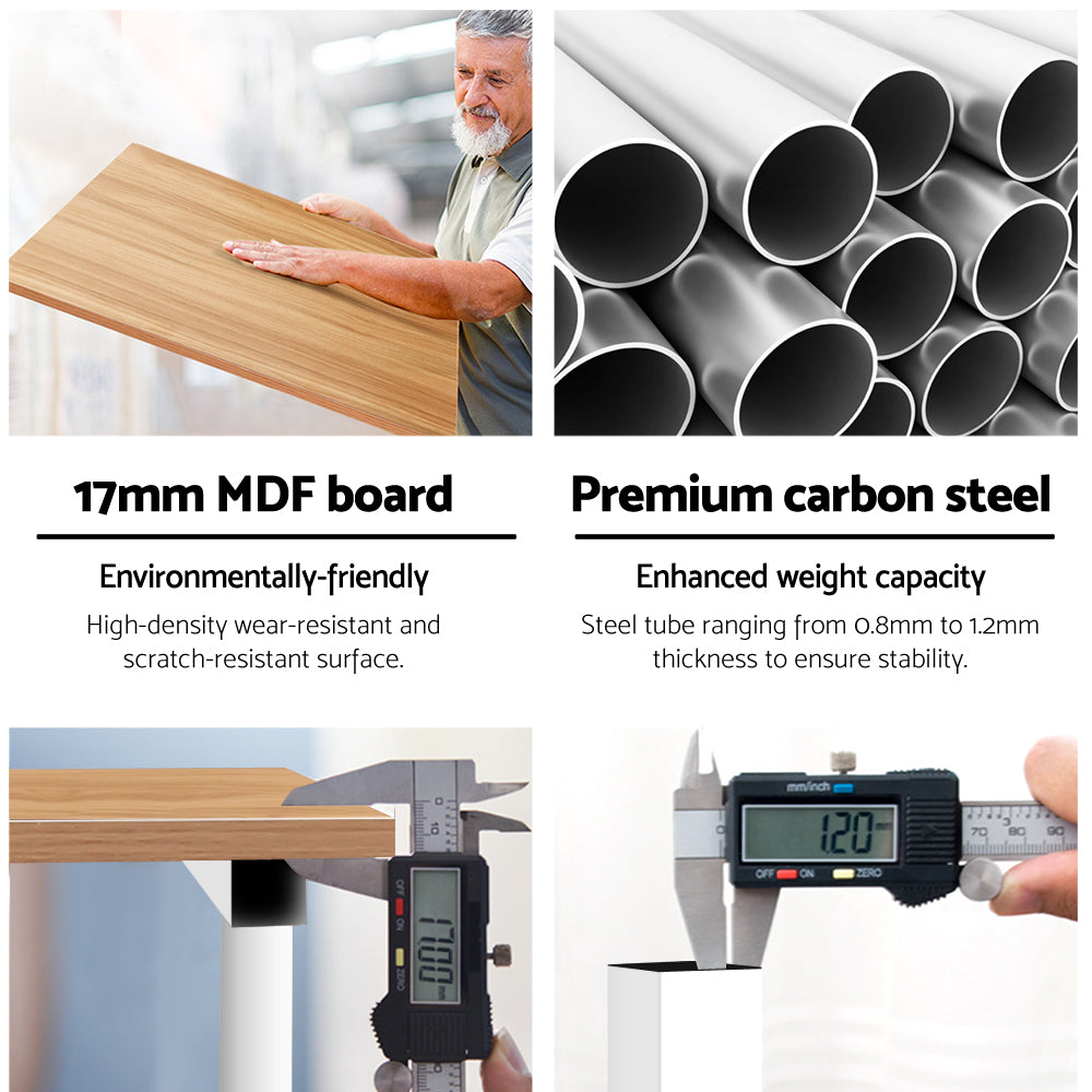 The castor wheels rotate 360°and can be readily locked down. Or remove the detachable wheels for a more permanent fixture. And if needed, the CPU sideboard can also be detached to fit in with your space configuration. Not least, with its thick 17mm MDF board desk tops and sturdy powder-coated H-shape steel frame, our Mobile Twin Laptop Desk is absolutely versatile to function as any type of work top, sitting down or standing up.