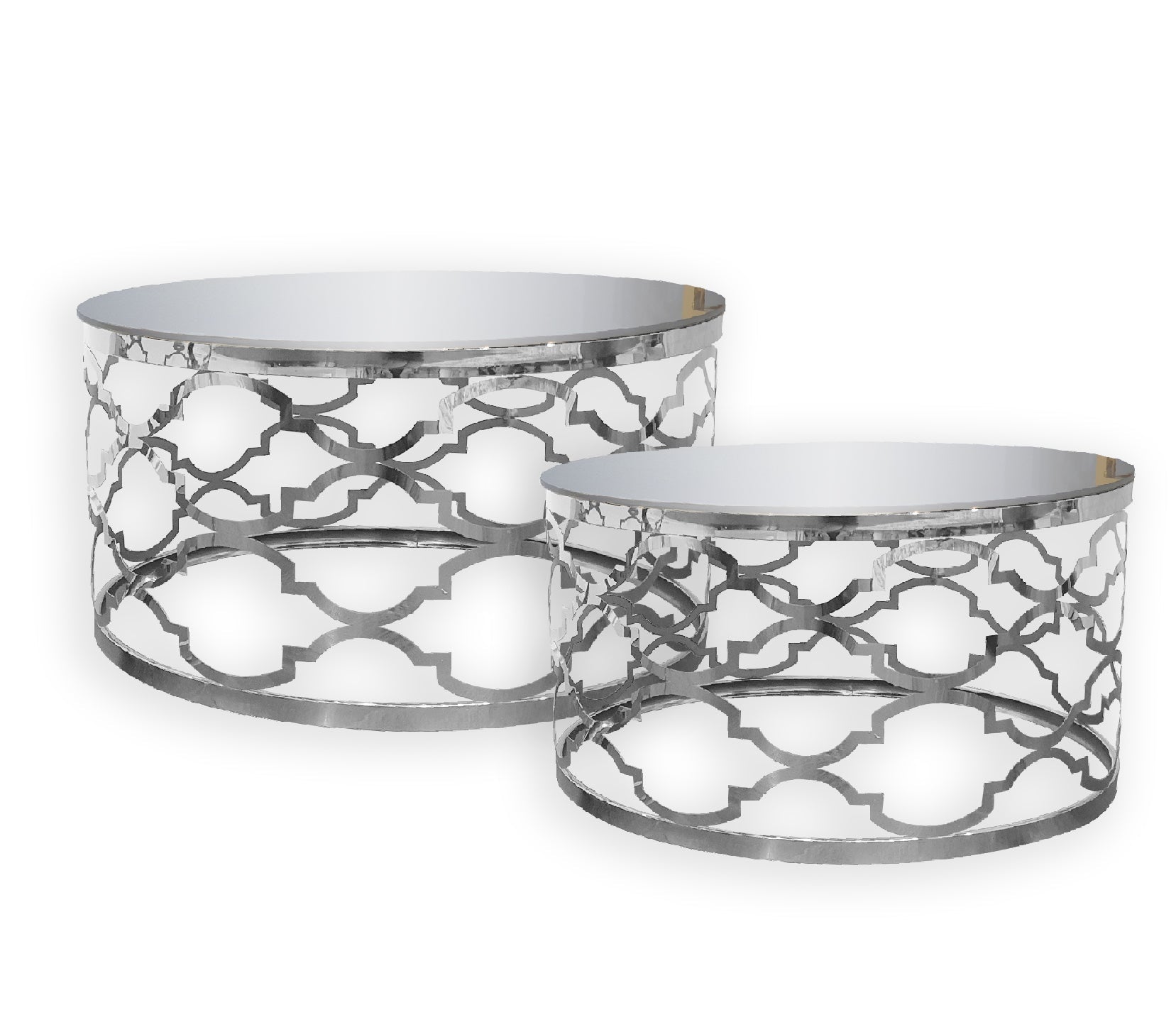 The Atlantis Stainless Steel Coffee Table - Silver (Set of 4) by Style By Inspiration is a versatile set of tables that can be used together or separately to create a stylish and modern living space. Its sleek design and layered effect make it a statement piece that will add character and style to any room in your home. Additionally, the set of tables is currently available for purchase on the Style By Inspiration website