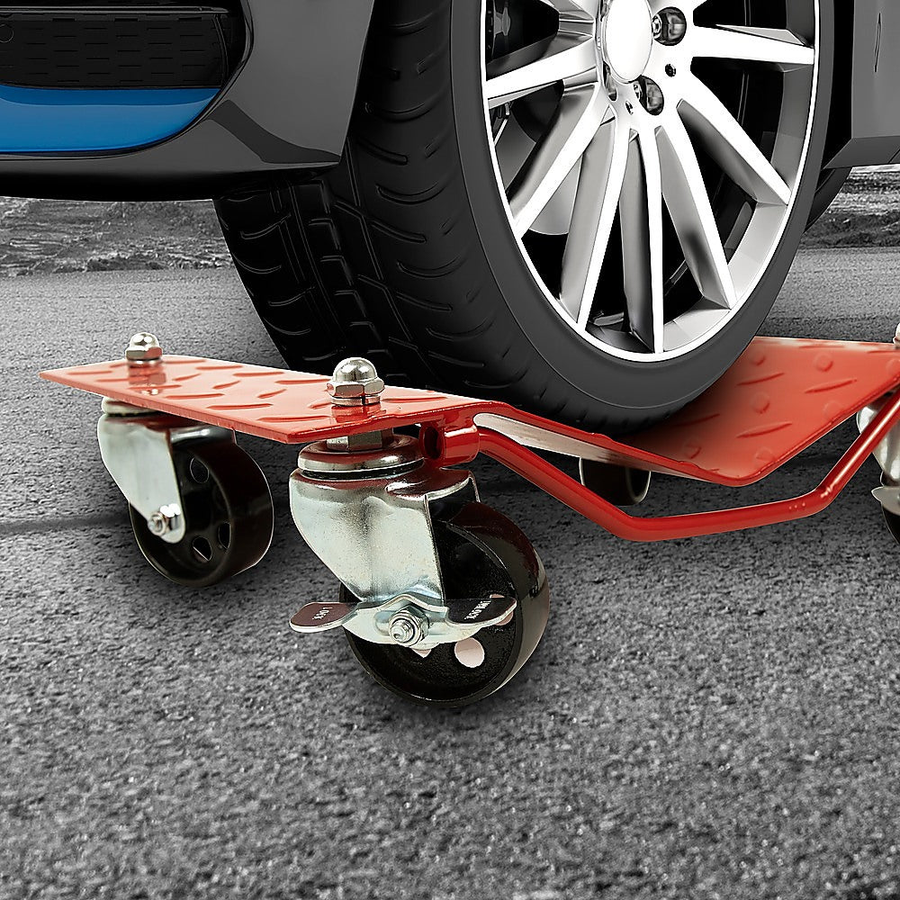 Moving or repairing your non-functioning vehicle has never been simpler with these Auto Car Wheel Dolly Skates. Once you load your vehicle onto these dollies, you can safely move your vehicle quickly and efficiently. These premium vehicle dollies are designed to support loads of 680kg – making them extremely durable and suitable for most, if not all, vehicle manoeuvrings.