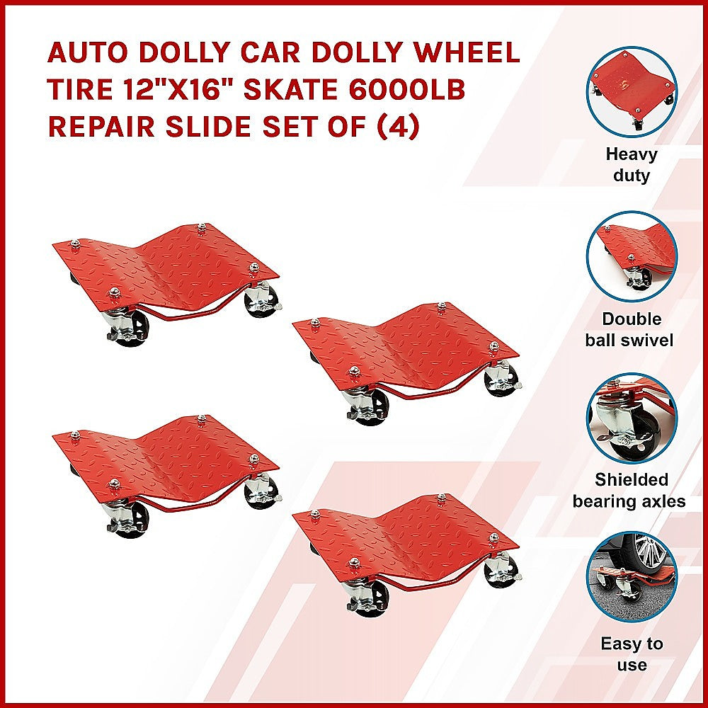 Auto Dolly Car Dolly Wheel Tire 12"x16" Skate 6000lb Repair Slide Set of (4)