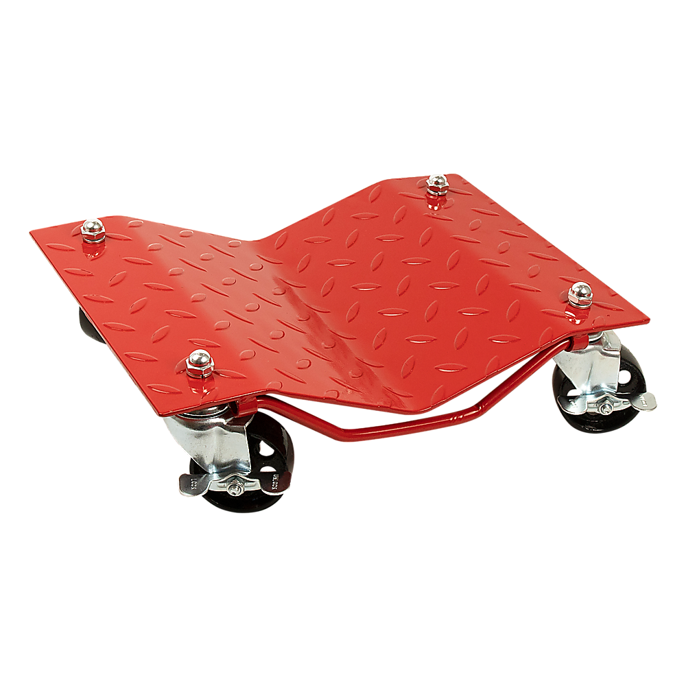 Designed with sturdiness in mind, the dollies are constructed using powder-coated, thick diamond plate steel so you can guarantee your money's worth. The dollies are equipped with 4 dual-bearing swivel casters, two of which have breaks to help control vehicle movement. The premium wheels have radial bearing axles that allow for easy one-person pushing. Despite the economical price, this product is factory tested and intended for professional or garage use. Purchase today at Randy & Travis Machinery to get your vehicle repairs on the go.