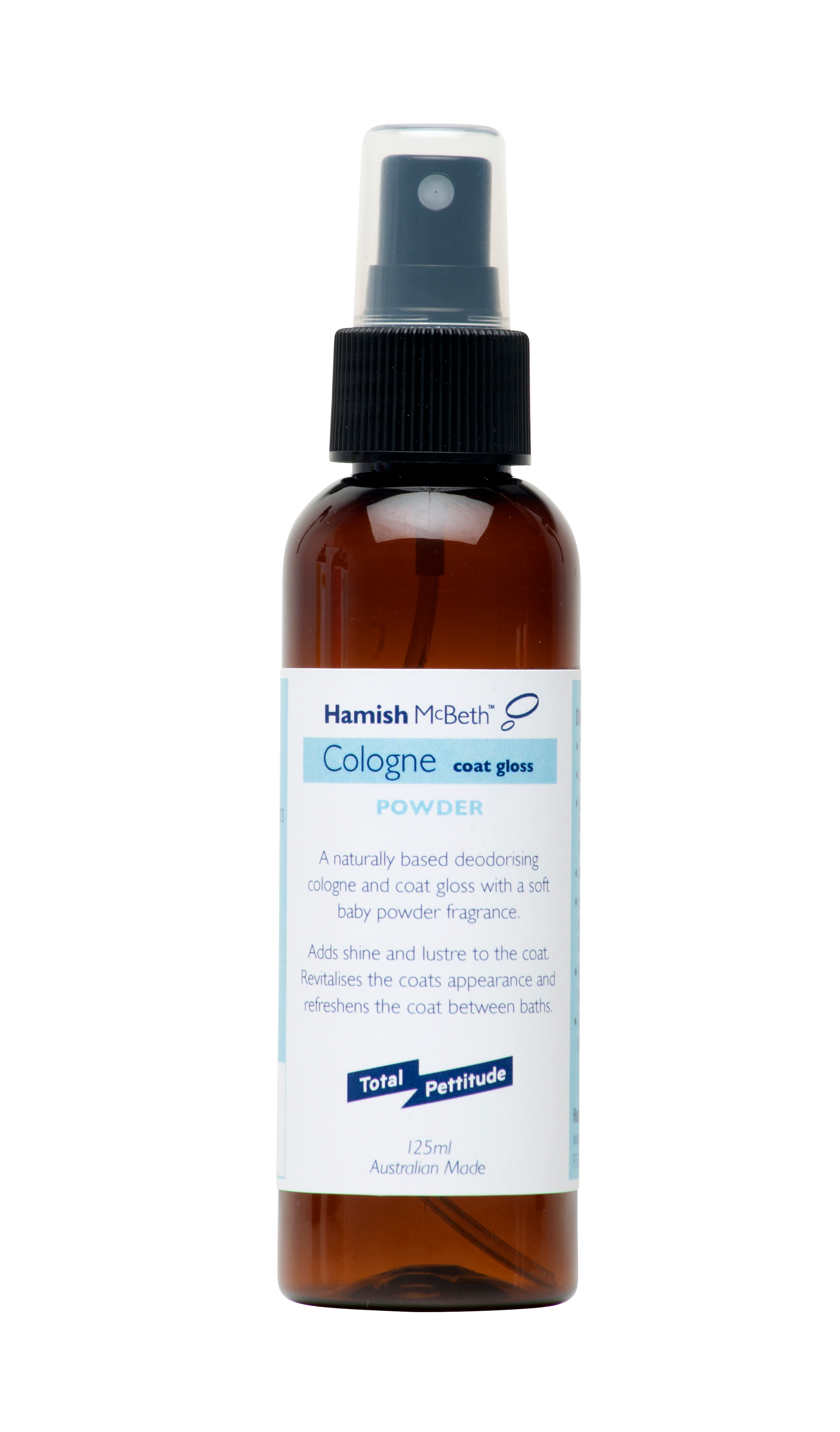 A naturally based, plant derived dog cologne and coat gloss with conditioning agents.