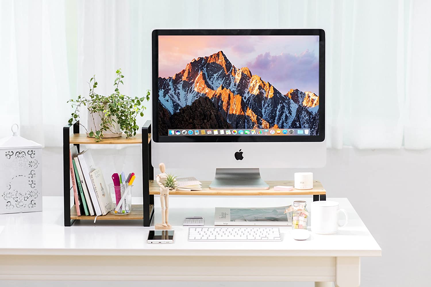 - Bamboo Monitor Laptop Stand With Storage 2 Tier