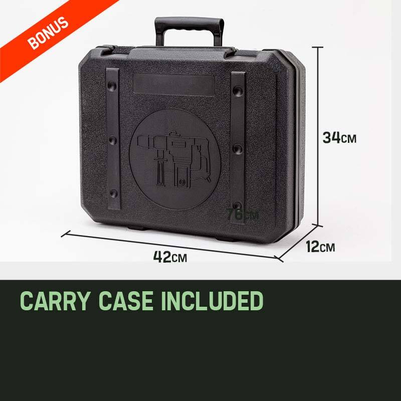 PLUS! This outstanding package includes 6 BONUS attachments with quality SDS Carbide Bits and a Traditional SDS kitted Keyed Chuck.