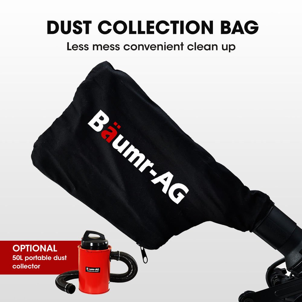 The DBR-255 mitre drop saw comes complete with a dust collection bag, and gives you the option of attaching a vacuum for the ultimate sawdust extraction.