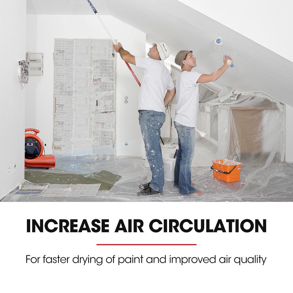 - Applications: floor and carpet drying, inflatables, water restoration, janitorial