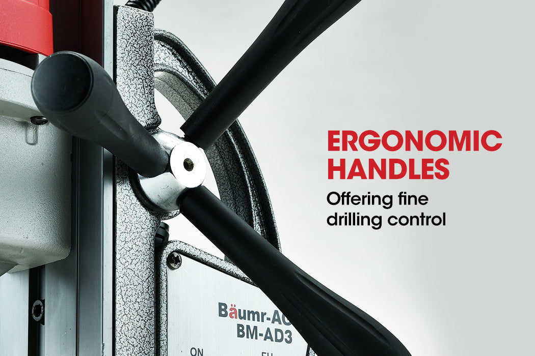 With an integrated handle and electro-magnetic base you can easily shift it to where you need to work. At the flick of a switch the base engages an incredible 11,500 newtons of adhesive force! With the Baumr-AG BM-AD3 Annular drill you can look forward to fast set-ups, high productivity and with clean, safe results.