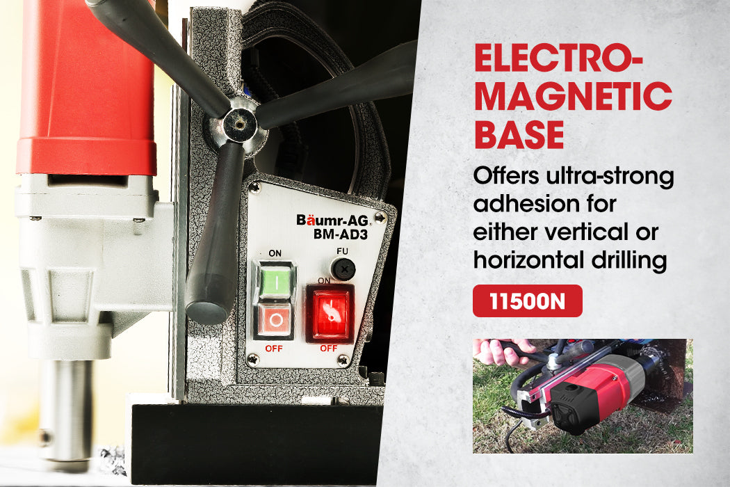Versatile, accurate and fast, with strong magnetic adhesion, the Baumr-AG BM-AD3 Annular Magnetic Drill is an essential tool when performing heavy-duty industrial and steel fabrication work. True to the Baumr-AG brand name, the 2in1 Annular Cutter series is unmatched for performance and value.