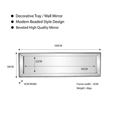 The Beaded Tray in Silver Large from Style By Inspiration is a stylish and functional accessory that will add a touch of elegance to any room. The tray features a beautiful beaded design on the edges, which adds texture and visual interest. The Silver finish gives the tray a sleek and modern look, making it a great choice for contemporary décor styles. The tray is made from high-quality materials, ensuring that it is both durable and long-lasting. It is perfect for use as a decorative accent on a coffee table or ottoman, console table. Overall, the Beaded Tray in Silver Large is a versatile and stylish accessory that is sure to enhance the look of any room.