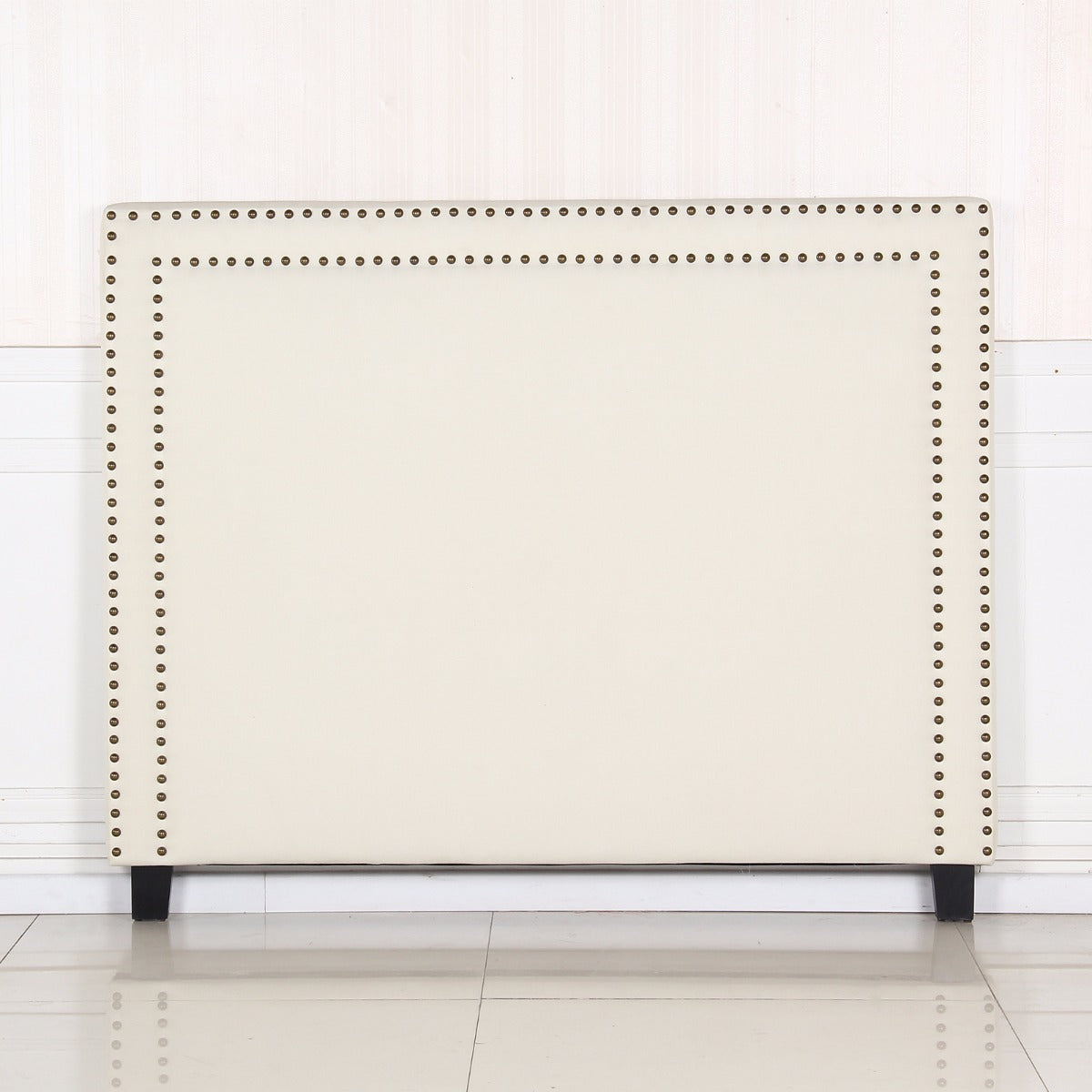 Bed Head Queen White Headboard Upholstery Fabric Studded Buttons