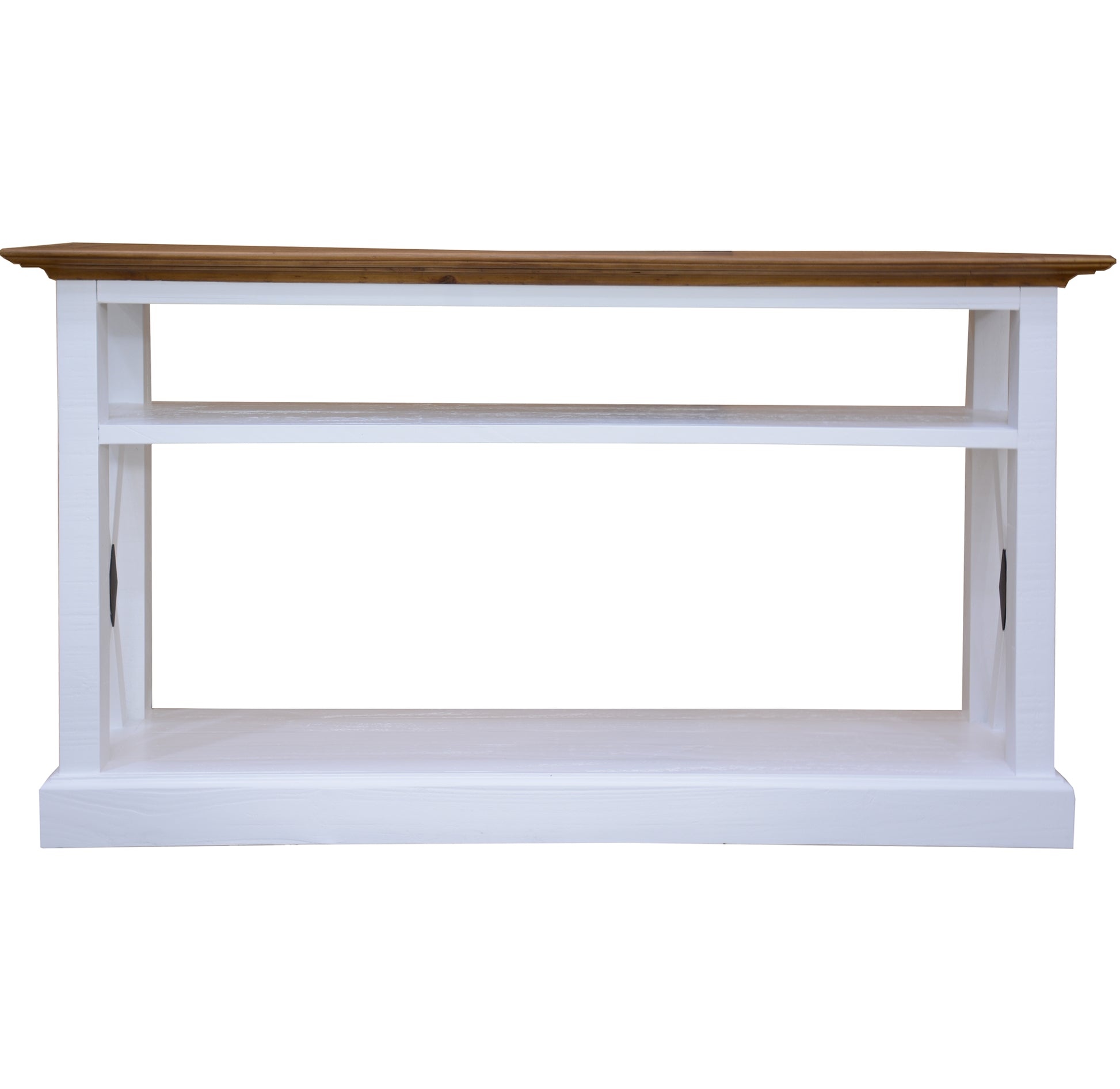 Does your living room ensure convenience and happiness for you? It surely will once you place an attractive console table here. This console table, beautifully designed in the Hampton style, will make your life convenient and happier. This highly useful furniture piece has 2 open shelves- one on the upper part and one on the lower part. Cross design on two lower sides of the table enhances its charm. The console table is designed in the Hampton style. It has a solid base and it is made of high-quality Solid Pine Wood, obtained in a sustainable manner. The wood makes the table comparatively lighter yet strong, durable, and also heat resistant. A one-year warranty is included with the fully assembled console table.