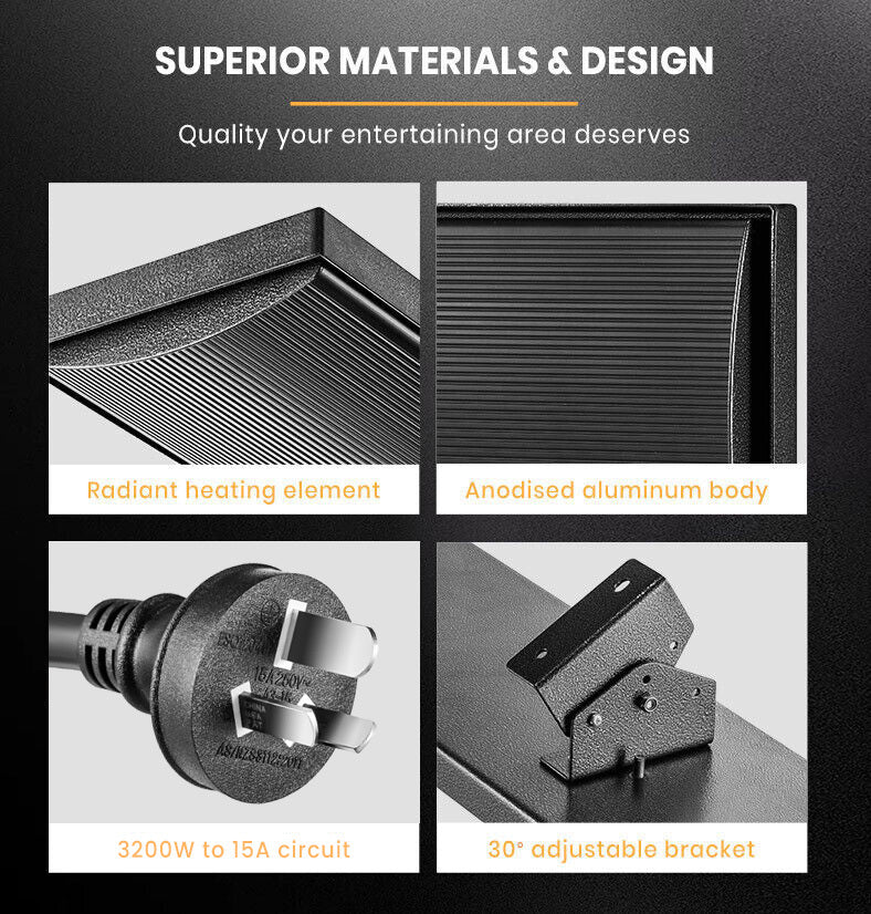 - 1x 3200W BIO Electric Outdoor Strip Heater