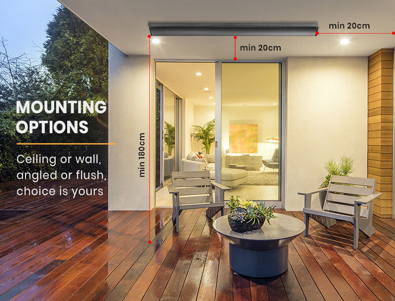 With silent operation and modern minimalist aesthetics, the ThermaStrip 32 is sure to seamlessly integrate into any outdoor living space. Simple to install swivel brackets allow for the flexibility to mount the sleek strip heater undercover on walls, ceilings or beams.