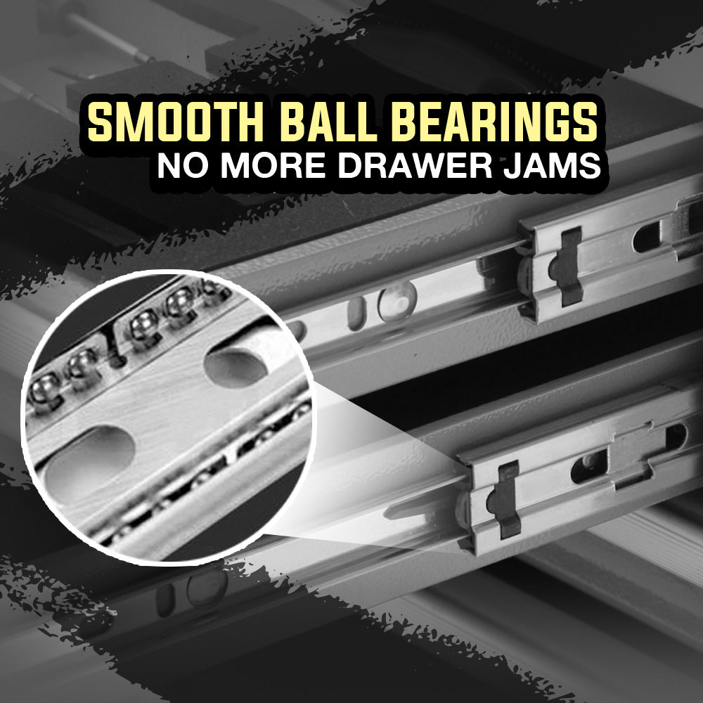 Secure removable moulded inserts contained in the four drawers ensure every tool has a place. Each drawer slides effortlessly in and out on smooth ball bearing rails, which makes finding and accessing each tool a cinch. The tubular lock provides added security and the side handles allow for easy transport. This compact unit contains an incredible 478 pieces and fits discreetly on a workbench or shelf.
