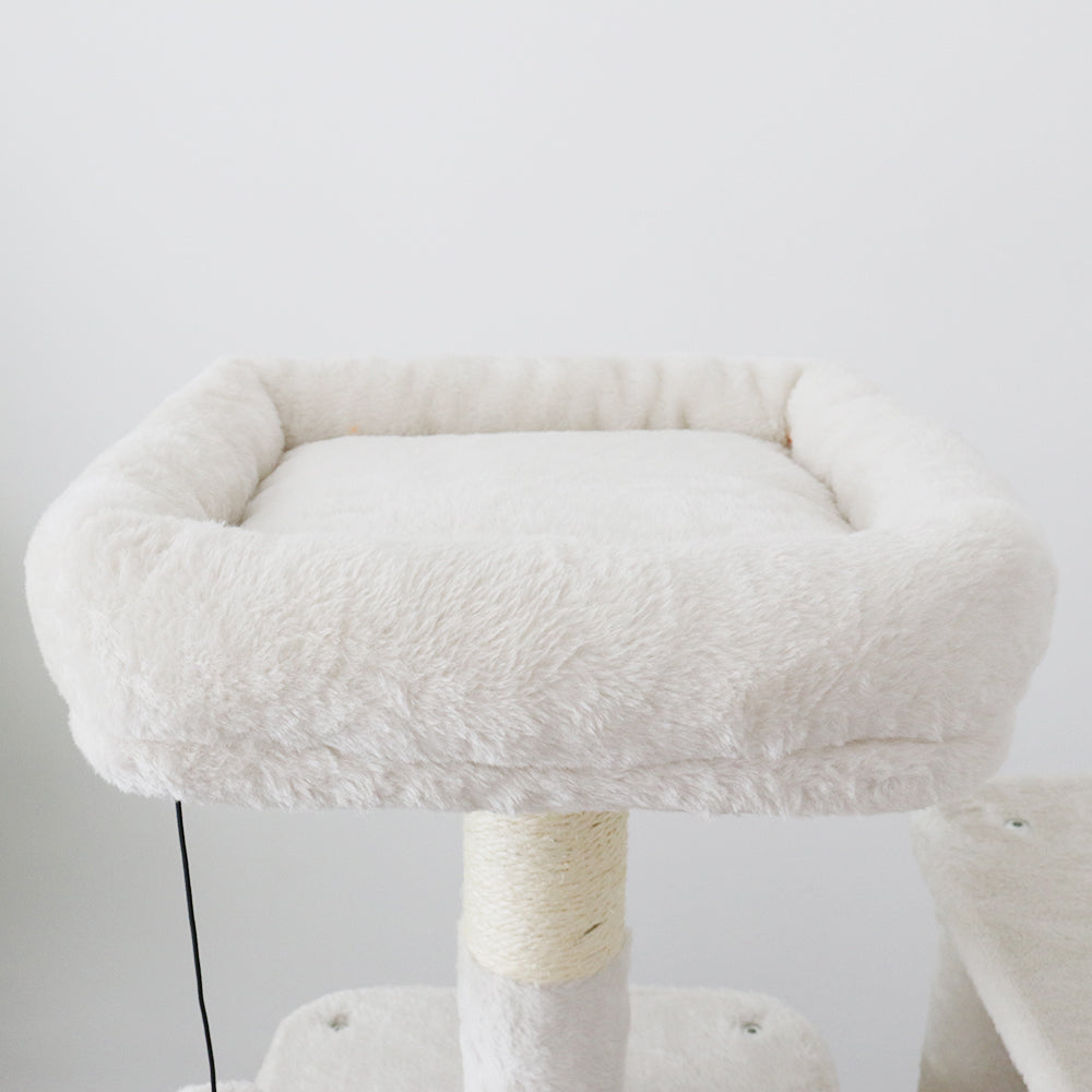 Scratch and play space, the tiered cat tree has multiple scratching posts to give your cat a healthy outlet for their scratching needs, instead of using your furniture or carpet! The sisal rope scratchers on the cat tower are naturally durable and safe for your kitten to use and the differing levels of the posts also help cats to stretch and tone muscles. Not only is this the perfect scratching platform, but it is also ideal for playing and even features a dangling toy for endless hours of entertainment.