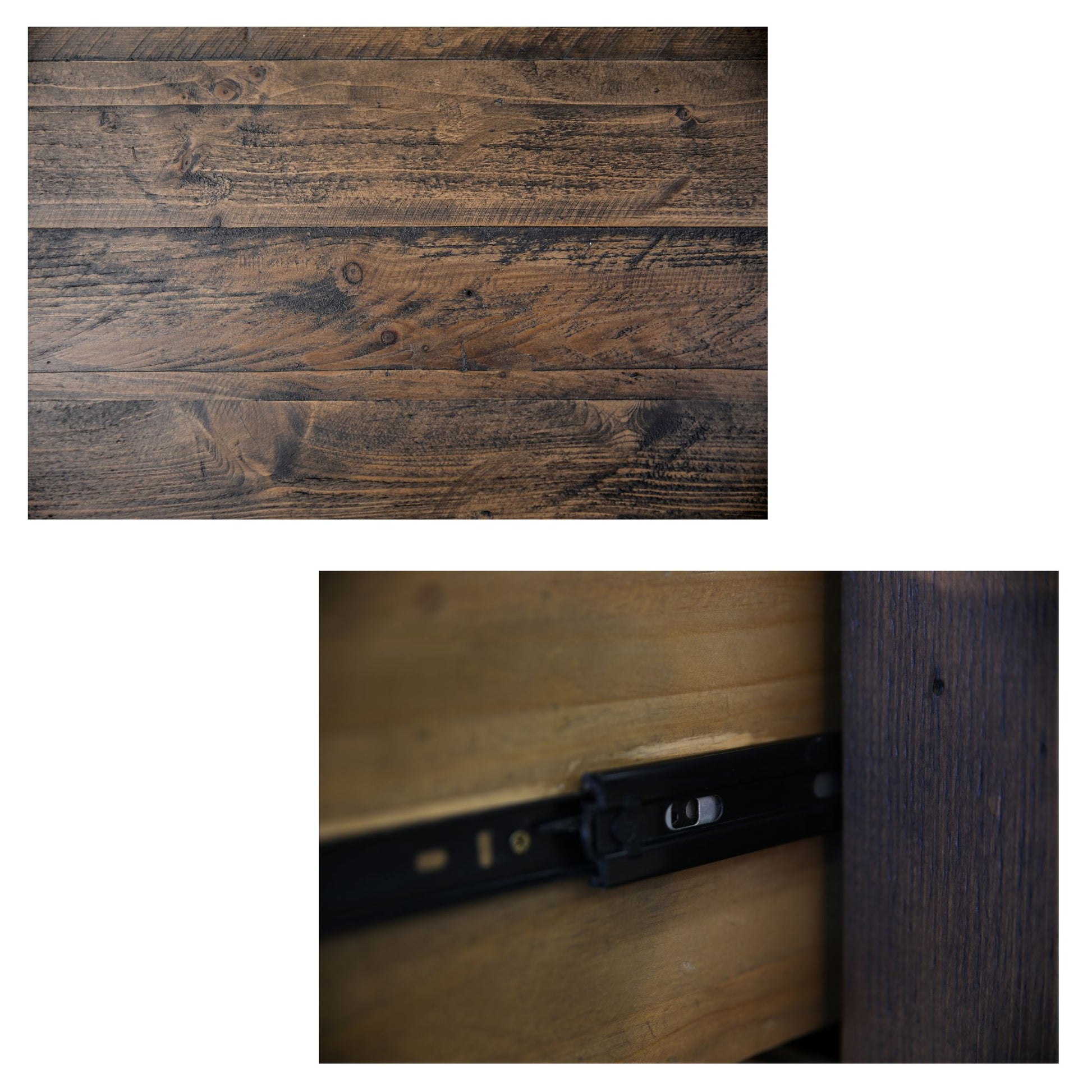 - Robust metal handles on drawers