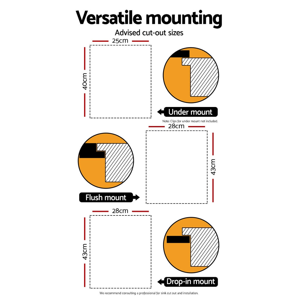 Cefito Kitchen Sink 45X30CM Stainless Steel Basin Single Bowl Laundry Black