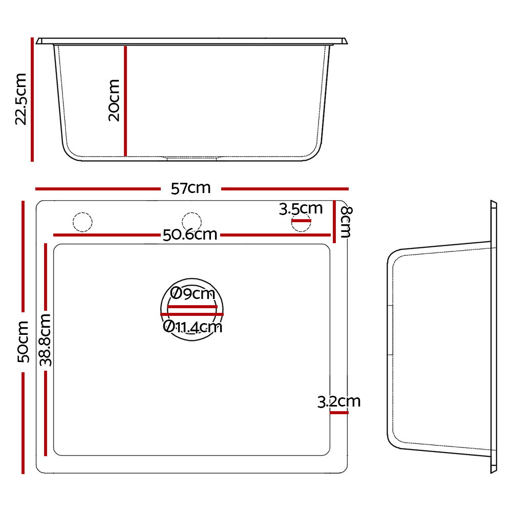 Cefito Stone Kitchen Sink 570x500MM Granite Under or Topmount Basin Bowl Laundry Black