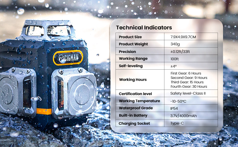 - High Visibility-- The green laser level line is 4x brightness than the red beam, which can provide a working distance of up to 100ft, available outdoors. Safety level-Class II, <1mW power output
